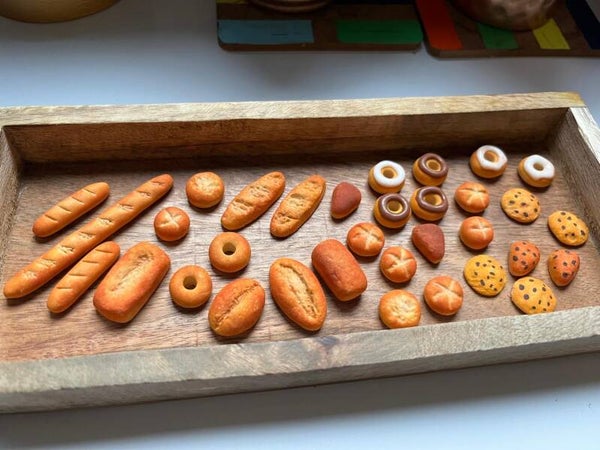 Tauchen Sie in die zauberhafte Welt der Miniaturen ein mit unserem Puppenhaus-Küchen-Set, das eine liebevoll gestaltete Bäckerei aus hochwertigem Polymer Klay bietet. Dieses Set ist speziell für Puppenstuben und -häuser konzipiert und enthält eine Vielzahl von Bäckerei-Lebensmitteln perfekt auf Ihre Küchenlandschaft passen.